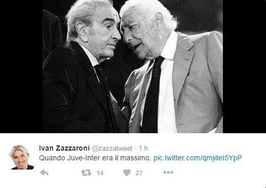 Tweet un po’ nostalgico quello di Ivan Zazzaroni, che avrà fatto venire una lacrimuccia sia agli juventini che agli interisti. Il giornalista sportivo ha postato una foto che ritrae gli “Avvocati” Peppino Prisco e Gianni Agnelli.