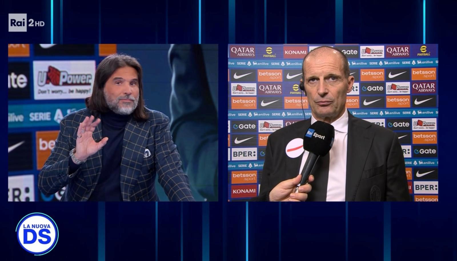 Massimiliano Allegri ha commentato il derby - per la prima volta quest'anno - con i commentatori presenti nello studio della Nuova DS. È proprio Lele Adani (che con il tecnico del Milan aveva avuto un dissing piuttosto importante) a esordire con l'analisi della vittoria dei rossoneri, mettendo in luce gli elementi chiave della vittoria: "Onore al merito per il lavoro che stai facendo, non è un caso quando vinci con squadre più forti e più collaudate. La domanda è: tu avevi pensato, lavorato, immaginato una partita di questo tipo? Dal mio punto di vista tu questa la vedi quasi come una partita perfetta. Hai sofferto, hai rischiato, ma dopo hai contenuto e l'hai portata a casa".