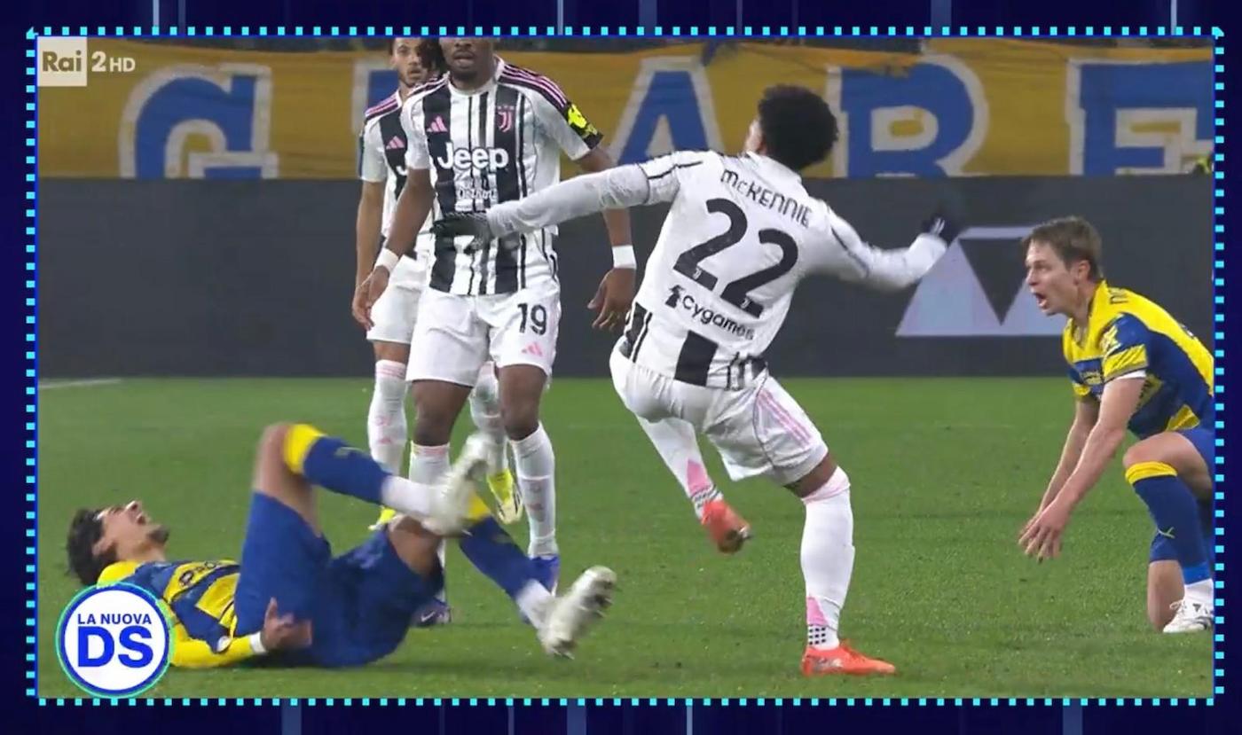 Mauro Bergonzi si è focalizzato su alcuni episodi da moviola di Parma-Juventus. L'intervento più grave è quello di McKennie. Spiega Bergonzi: "Qualche dubbio, tanti dubbi su questo intervento di McKennie su Troilo. Il direttore di gara è molto, molto vicino all'azione. Guardate l'intervento di McKennie che brutto, con il piede sinistro che va a colpire la caviglia sinistra del giocatore del Parma. Intervento brutto perché c'è il piede a martello, ci sono i tacchetti esposti sulla caviglia che si distorce. Questo è un fallo che può intaccare l'incolumità dell'avversario. Generalmente il cartellino giusto è quello rosso".