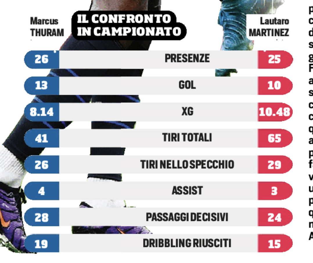 Il tandem offensivo titolare ha contribuito con 30 gol sui 76 totali della squadra in tutte le competizioni, ma l’alternanza realizzativa tra i due ha finito per penalizzare il rendimento complessivo. Thuram ha brillato nella prima parte della stagione, mentre Lautaro ha iniziato a segnare con continuità solo in seguito, creando uno squilibrio che ha inciso sulla fluidità offensiva. Oggi, però, è proprio il digiuno del francese a preoccupare maggiormente il tecnico nerazzurro.