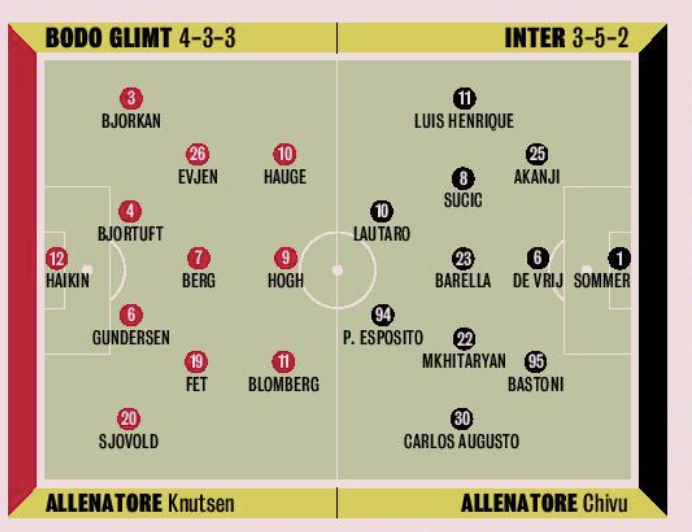 L'Inter scenderà in campo questa sera alle 21 in casa del Bodo Glimt. Chivu deve ancora sciogliere qualche dubbio sulla formazione, in particolare su chi comporrà la coppia d'attacco in Norvegia.