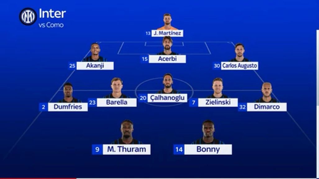 —In difesa dovrebbe tornare Acerbi al posto di De Vrij. In porta confermato Martinez, a completare il pacchetto arretrato ci saranno Akanji e Carlos Augusto. In mezzo riescco Zielinski dal 1'. In attacco potrebbe spuntarla Bonny su Esposito.