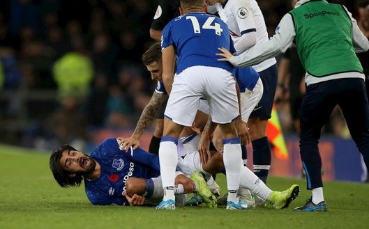Un fallo dell'esterno del Tottenham costa un infortunio gravissimo al centrocampista dell'Everton
