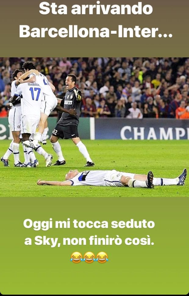 Tre ore al fischio d'inizio di Barcellona-Inter, sfida che inevitabilmente riporta alla mente dei tifosi interisti l'impresa della squadra di Jose Mourinho nel 2010, quando al Camp Nou conquistarono la finale di Champions League in 10 uomini per più di 70 minuti. Esteban Cambiasso, uno degli eroi di quella notte, ha postato una simpatica storia su Instagram che lo ritrae esultante dopo la partita del Camp Nou, ironizzando sul fatto che stasera invece siederà comodo a Sky Sport, diversamente da quella notte: