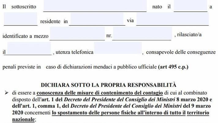 Aggiornato il documento per uscire di casa, andare a lavoro, fare la spesa: si aggiunge la dichiarazione di non essere in quarantena né positivo