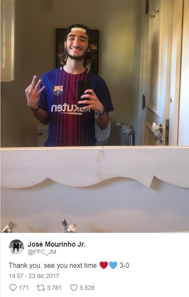 Jose Mourinho jr ha festeggiato la vittoria del Barcellona nel Clasico