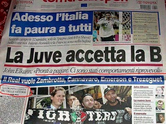 Così Paolo Condò, noto giornalista, intervenuto negli studi di Sky Sport, in merito alla posizione della Juventus di voler vedersi riassegnati gli scudetti revocati negli anni di Calciopoli.
