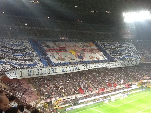 Una cartolina a San Siro. È quella che la Curva Nord ha spedito ai tifosi milanisti. "Nella mia estate senza mare...scriverti una cartolina era il minimo che potessi fare: Ciao Merde...", recita la coreografia nerazzurra che si riferisce ai preliminari di Europa League usati con ironia a proprio vantaggio. E la scena continua con il mercato e le cessioni rossonere di Ibra e Thiago Silva e un messaggio: "Con i migliori auguri per la stagione 2012-2013". Adesso il derby può cominciare...