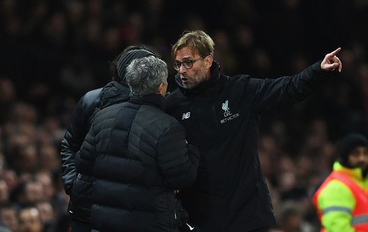 Mourinho è uno show-man...ager e nella sua carriera da allenatore ha fatto sempre parlare di sé per tutta una serie di parole, di gesti, che ne hanno fatto uno dei tecnici più comunicativi al mondo: simpatico a molti suoi tifosi, antipaticissimo per i suoi rivali. E ne sa qualcosa pure Jurgen Klopp che nel gennaio 2017, nella sfida tra Liverpool e United lo sente protestare a bordo campo dopo un fallo di Herrera su Firmino che viene strattonato. Il brasiliano reagisce e Mourinho scatta in piedi e chiede il giallo all'arbitro Oliver. Gli si avvicina Klopp, torna indietro saltellando, è nervosissimo e protesta anche lui, i due vengono in contatto di nuovo, ma non succede nulla di particolarmente violento: vengono allontanati dal quarto uomo e l'arbitro ammonisce entrambi i giocatori.