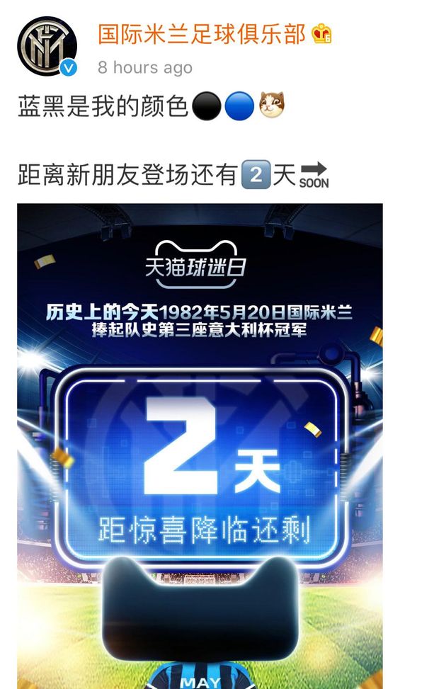 E' la stessa Inter, sul profilo ufficiale Weibo, a dare appuntamento ai tifosi: "Tra due giorni nuovi amici", scrive l'Inter, con un emblematico "soon" a confermare le indiscrezioni.
