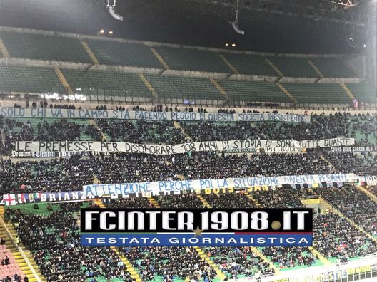 A metà del secondo tempo, altro striscione contro il club: "C'è un inglese un cinese e un indonesiano che vogliono farci tornare ad essere la barzelletta d'Italia"