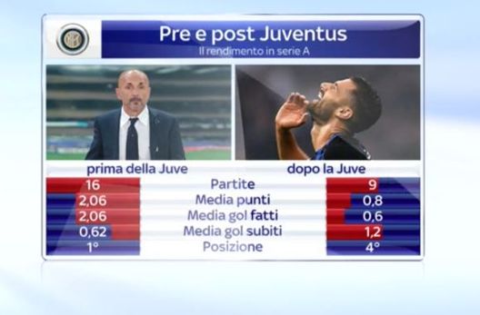 A SkySport hanno individuato l'inizio del momento no dei nerazzurri partendo dallo 0-0 allo Juventus Stadium e dopo la gara con il Pordenone