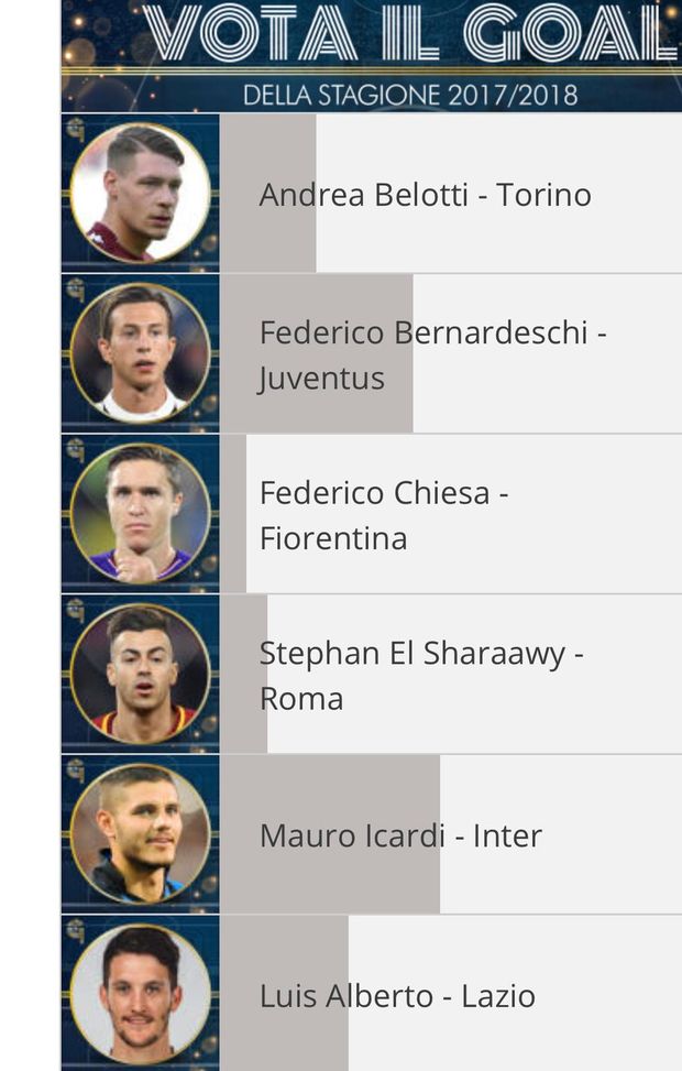 Al momento, in testa alle votazioni però c'è Brignoli, portiere del Benevento, che sta trionfando grazie all'incredibile gol di testa segnato nel recupero contro il Milan.