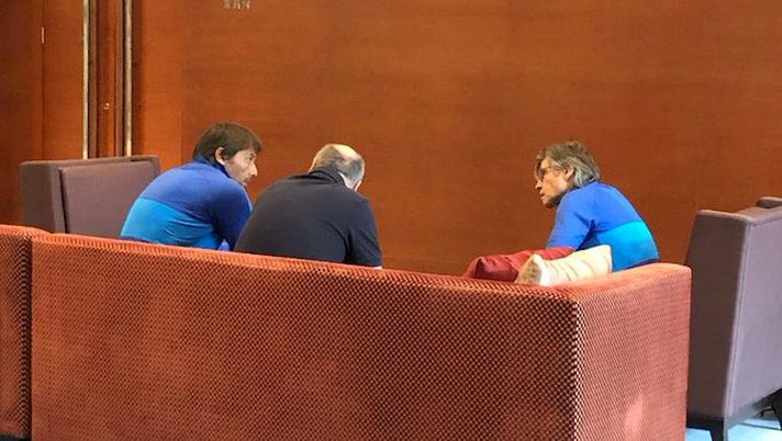 Antonio Conte è stato pizzicato nell'hotel che ospita l'Inter a colloquio con Marotta e Oriali: il mercato al centro