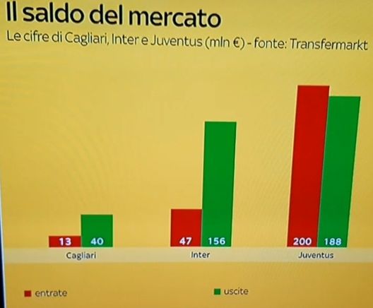 188 mln è quanto ha speso invece la Juventus che però ha incassato dai giocatori ceduti circa 200 mln.