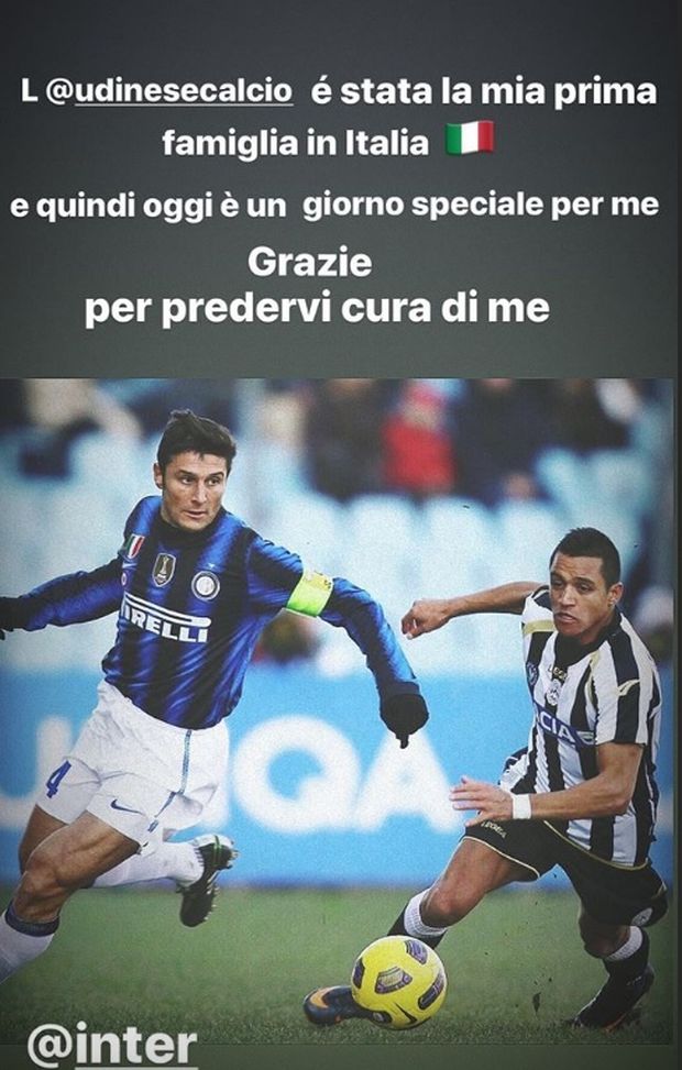 Questa sera è in programma Inter-Udinese, match valido per la terza giornata di Serie A. Una partita molto speciale per Alexis Sanchez che, in bianconero, ha trascorso anni indimenticabili che gli hanno permesso di dare uno slancio alla carriera del cileno, poi approdato al Barcellona. "L'Udinese è stata la mia prima famiglia in Italia. E quindi oggi è un giorno speciale per me. Grazie per prendervi cura di me", è stato il commento di Sanchez pubblicato tramite Instagram Stories.