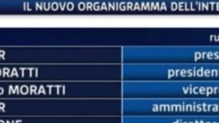Nella foto, tratta da Sky Sport, le principali posizioni del nuovo organigramma nerazzurro.