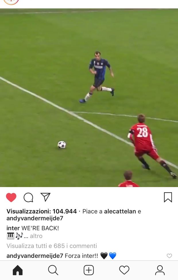 All'Inter non ha fatto vedere tutto il suo straordinario talento ma Andy Van der Meyde è rimasto molto legato alla maglia nerazzurra e non smette mai di sottolineare la sua passione. Lo ha fatto anche oggi, commentando il post con cui l'Inter ha salutato il ritorno in Champions, previsto per domani.