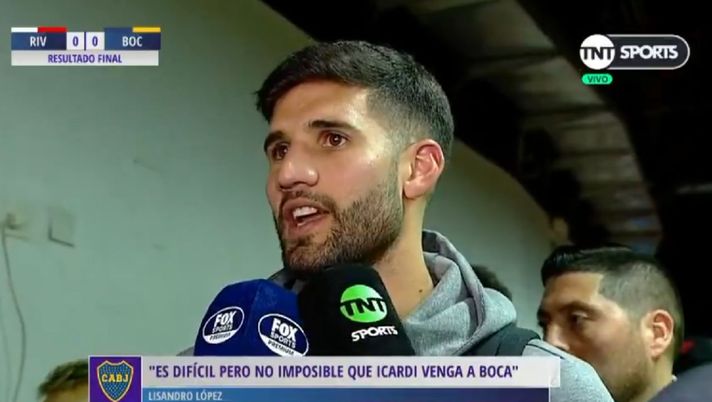 "Magari venisse Icardi, credo sia difficile ma non impossibile. Possibile che venga, gli stanno bene i colori. Qualuque squadra vorrebbe avere un 9 come Mauro Icardi," ha detto Lopez uscendo dallo spogliatoio ospiti del Monumental dove gli Xeneizes hanno affrontato il River Plate in un incontro finito 0-0.