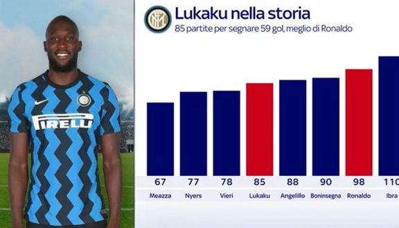 Ma per Lukaku ci sono volute meno partite di Ronaldo. Al belga sono servite 85 partite per arrivare a 59 gol, al brasiliano ne servirono 98. Numeri importanti che lo collocano tra i migliori della storia dell'Inter, solo in 3 meglio di Lukaku nel raggiungere le 59 reti: Meazza, Nyers e Viri.