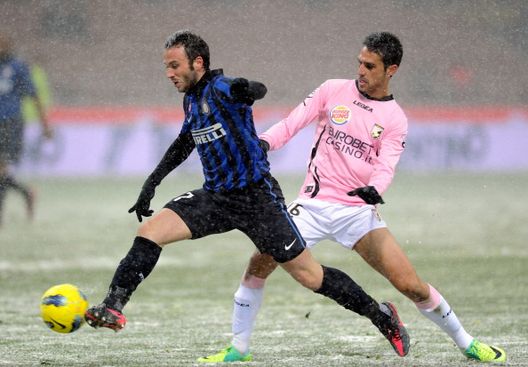 Quando a gennaio del 2011 arriva all'Inter dalla Sampdoria, è già un idolo dei tifosi nerazzurri perché la stagione prima era stato autore di una doppietta contro la Roma che aveva permesse all'Inter di rimanere in testa alla classifica e poi di vincere il campionato e fare il Triplete. Il suo esordio contro il Palermo è da sogno, segna una doppietta e si procura un rigore che permetterà all'Inter di vincere in rimonta contro il Palermo. In maglia nerazzurra colleziona 50 presenze e 16 gol.