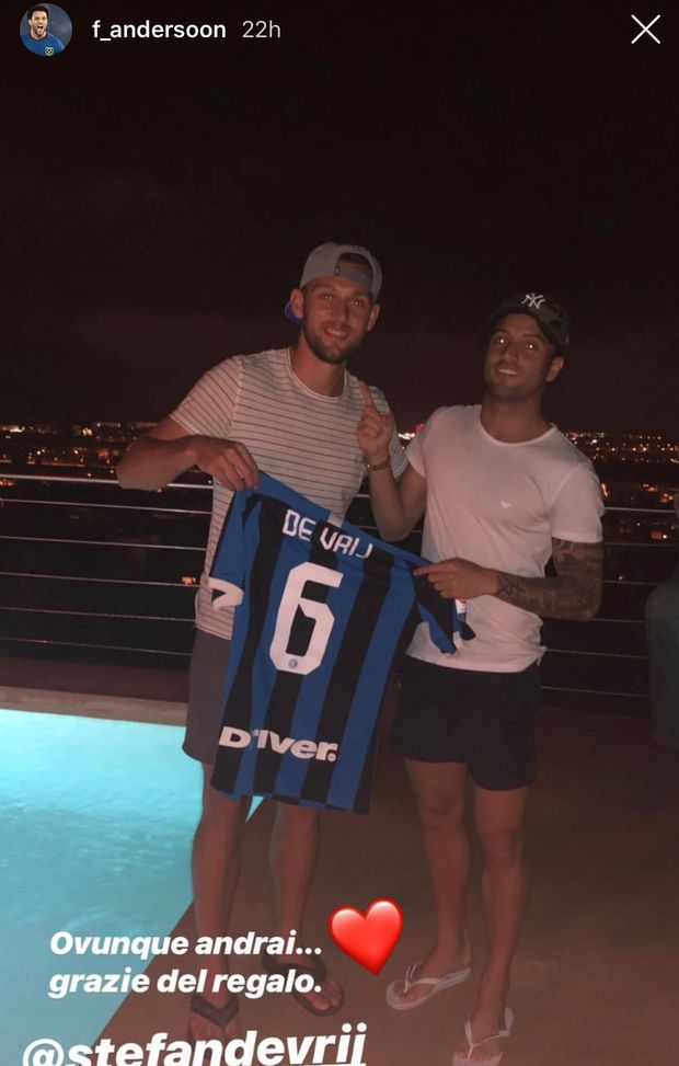Stefan De Vrij è un idolo dei tifosi dell'Inter. Il difensore olandese, arrivato a parametro zero, è stato tra i migliori di questa stagione. Ma De Vrij è anche uno dei più richiesti sul mercato, complici le sue grandi prestazioni stagionali. De Vrij, in vacanza, si è incontrato con Felipe Anderson, suo amico e vecchio compagno ai tempi della Lazio. De Vrij ha regalato a Felipe Anderson una maglia dell'Inter ma il messaggio di ringraziamento del brasiliano ha preoccupato i tifosi nerazzurri.