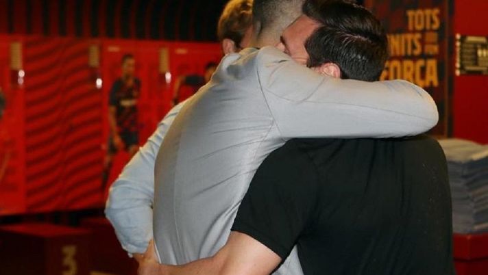 Leo Messi saluta Luis Suarez, da ieri ufficialmente dell'Atletico Madrid, e riparte all'attacco della dirigenza catalana