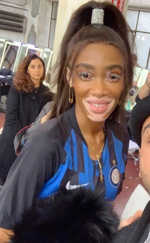 Milano Fashion Week colorata di Inter: Winnie Harlow sfila con la maglia nerazzurra mashup