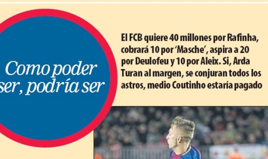 Mundo Deportivo – Rafinha, il Barcellona vuole 40 mln per “motivi economici e tecnici”