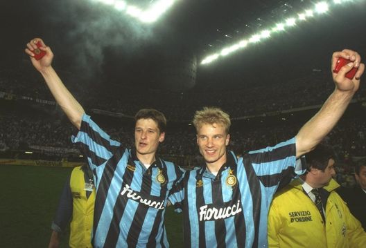Nell'estate del 1993 l'Inter decide di portare a Milano due dei gioielli più luminosi dell'Ajax: il centrocampista Wim Jonk e, soprattutto, l'attaccante Dennis Bergkamp, stella assoluta dei Lancieri e del calcio olandese, reduce da 3 stagioni da 89 gol complessivi. I due arrivarono in nerazzurro con grandi aspettative, e furono tra i principali artefici della vittoria della Coppa Uefa 1993/94: tuttavia, i due non riuscirono a fornire l'apporto sperato, e lasciarono l'Inter dopo due stagioni. Jonk fece ritorno in Olanda, al PSV Eindhoven, mentre Bergkamp approdò all'Arsenal, dove scrisse pagine indelebili della storia del club e divenne una leggenda dei Gunners. Dieci anni più tardi, nel 2003, l'Inter puntò nuovamente su un giovane talento dell'Ajax: Andy van der Meyde. Sbarcato a Milano come uno degli esterni offensivi più talentuosi d'Europa, fra problemi personali e difficoltà di adattamento al calcio italiano non riuscì a lasciare il segno, e due estati più tardi si trasferì all'Everton.