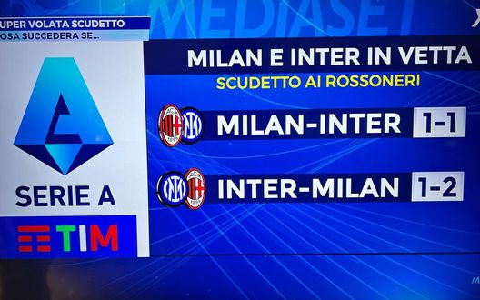 Il secondo caso vede Milan e Inter a pari punti al termine del campionato. Con le due milanesi appaiate, a vincere sarebbe ancora una volta il Milan, in vantaggio rispetto ai nerazzurri negli scontri diretti (1-1 all'andata e vittoria per 2-1 al ritorno).