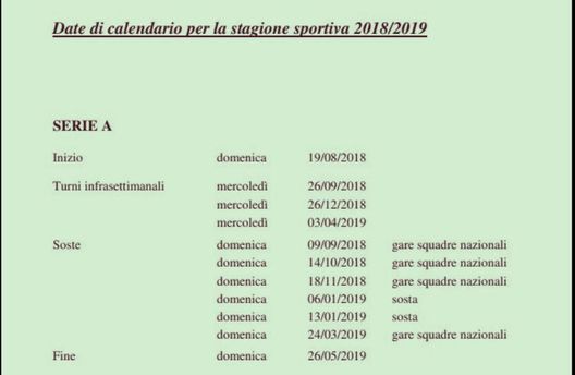 La Lega Calcio ha ufficializzato il calendario delle date per la nuova stagione: tre turni infrasettimanali e sei soste per le Nazionali