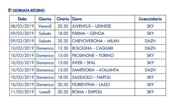 Serie A, anticipi e posticipi dalla prima giornata alla nona e programmazione tv