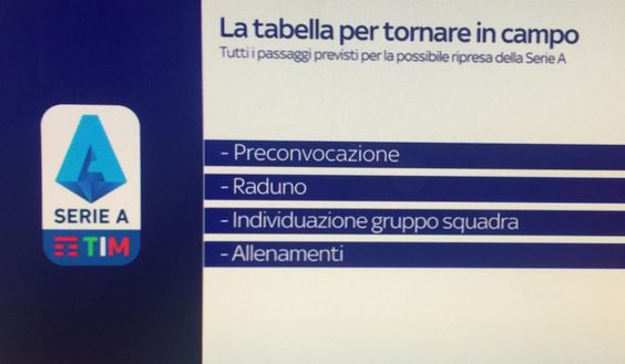 La Serie A si prepara a ripartire. Secondo quanto riporta Sky Sport, si sta studiando il modo per farlo e si stanno studiando tutte le vie possibili. Domani ci sarà un'altra riunione del comitato scientifico della Federcalcio, verrà presentato il protocollo e sarà un passo importante per capire eventualmente come si ricomincerà e quali saranno i passi fondamentali che si dovranno effettuare. Poi ci sarà una riunione del consiglio di Lega che farà delle ipotesi per una possibile ripartenza. Se ci sarà la ripartenza dovrà arrivare tutto attraverso quattro passi: la preconvocazione, il raduno, individuazione del gruppo squadra e poi l'allenamento.