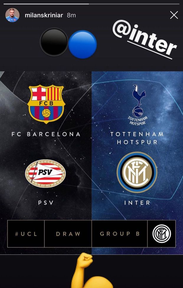 Milan Skriniar ha guardato in diretta il sorteggio di Champions