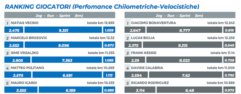 E se non bastasse, giusto per ribadire ancora una volta che i tempi degli alti e bassi sono finiti ci sono anche i km che percorre durante i 90'. Ieri, stranamente, si è piazzato al secondo posto per km percorsi, dietro al compagno di reparto Vecino. Mentre nella top 15 della Serie A occupa la seconda posizione, dietro solamente a Magnanelli del Sassuolo.