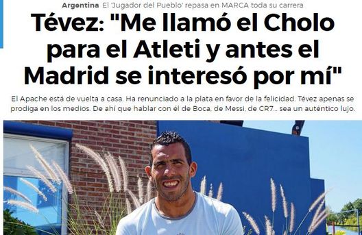 Carlos Tevez ha rilasciato un'intervista al giornale sportivo spagnolo Marca e ha anche avuto modo di parlare, tra le tante cose, del litigio al City con Mancini: "Abbiamo giocato in Champions League contro il Bayern Monaco ma mi ha lasciato in panchina. Mancavano dieci minuti alla fine del primo tempo e mi aveva chiesto di scaldarmi. Perdevamo due a zero e ha deciso di mandare in campo De Jong e di fare uscire Aguero. Sono rientrato e mi sono andato a sedere in panchina, ho pensato che non mi avrebbe fatto giocare. Mi ha detto di nuovo di scaldarmi e io gli ho risposto che ero pronto e che avrebbe potuto farmi giocare quando voleva. Ha cominciato a dire che non volevo entrare e mi ha creato un problema. Mi ha fatto allenare con le riserve e il giorno dopo sono andato in Argentina. Mi ha chiamato quando le cose si sono complicate. Poi abbiamo vinto la Premier League". Poi ha anche aggiunto: "Simeone mi voleva all'Atletico, è una cosa che mi ha emozionato, ma non potevo dire no al Boca".