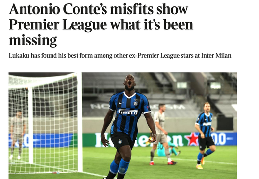 "Conte ha subito fatto sentire la sua presenza quando è arrivato a Milano la scorsa estate. Aveva in programma di trasformare l'Inter da perenne incompiuta in una seria minaccia per la Juventus. Lukaku era la chiave del piano. Il belga ha subito giustificato la fiducia riposta in lui. In un anno Conte ha reso l'Inter capace di lottare in Italia e all'estero. Ha lottato per liberarli dal soprannome di "Pazza Inter", guadagnato dopo anni di imprevedibili prestazioni e crolli. Non ci è riuscito completamente, ma arrivano alla finale di venerdì con una serie di sei vittorie consecutive".