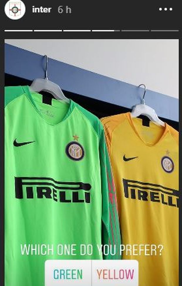 Contro il Bologna la maglia usata da Samir Handanovic era quella arancione, la stessa che utilizzava un anno fa. L'Inter, sul suo profilo Instagram, ha postato le foto delle maglie che lo sloveno e gli altri portieri nerazzurri (Padelli, Berni e Di Gennaro) utilizzeranno nel corso di questa stagione. Una è gialla e l'altra è verde e il club ha chiesto ai tifosi interisti quale preferiscono con un sondaggio.