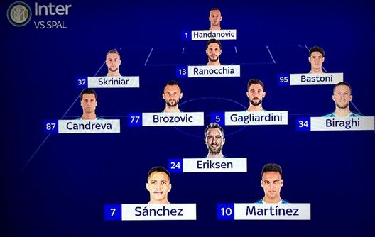 Con Lukaku rimasto a Milano per tornare in campo domenica sera contro la Roma, Antonio Conte punta nuovamente sulla coppia Lautaro-Sanchez. Eriksen alle loro spalle, con una grande occasione per mettere a tacere dubbi e incognite sul futuro. Chance, in difesa, anche per Ranocchia e Skriniar. Ecco la probabile formazione nerazzurra dell'incontro:
