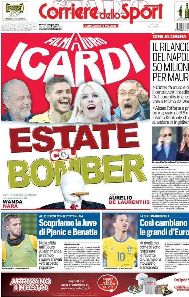 EDICOLA Cds – ‘Icardi estate col bomber’. Rilancio del Napoli: 50 milioni