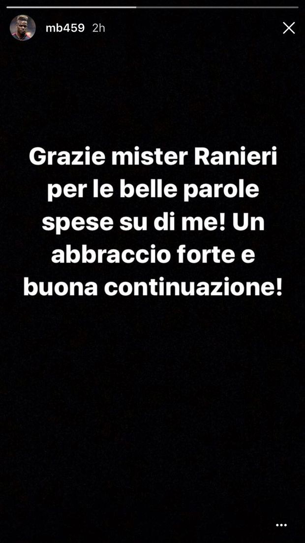 Balotelli ringrazia Ranieri: “Grazie Mister per le belle parole spese. Un abbraccio forte”