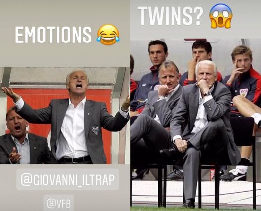 Stavolta Andy Brehme ha condiviso un paio di scatti che lo vedono insieme a Giovanni Trapattoni in panchina (sulla panchina dello Stoccarda). Scatti che catturano perfettamente le emozioni e tensioni del momento e che rivelano anche un curioso particolare: la somiglianza tra Brehme e il Trap. Quasi gemelli...