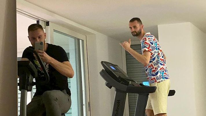 L'Inter è in isolamento, dopo la positività al coronavirus riscontrata a Daniele Rugani della Juventus. Ma i giocatori nerazzurri non vogliono affatto rinunciare a tenersi in forma. L'obiettivo, infatti, è farsi trovare pronti non appena l'attività agonistica riprenderà, quando l'Italia (si spera il prima possibile) riuscirà a sconfiggere il nemico coronavirus. E così, Marcelo Brozovic e Milan Skriniar, rispettivamente sul tapis roulant e sulla cyclette, si sono allenati insieme a casa del centrocampista croato, che ha pubblicato tutto su Instagram e ha scritto: "Io resto a casa con mio amico!".