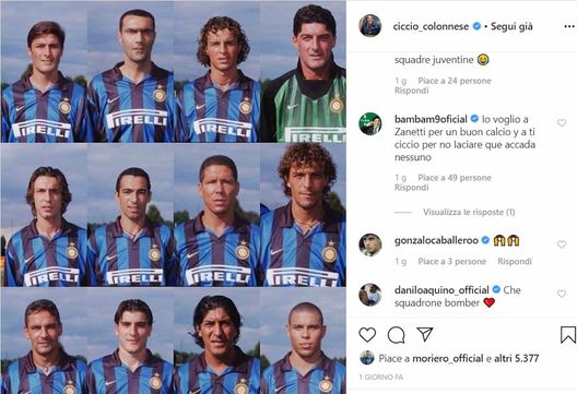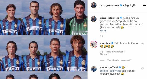 Una squadra formata da grandi giocatori, grandi campioni, ma soprattutto da compagni di squadra che ancora oggi sono legati da un forte legame affettivo. Quella era l'Inter sul finire degli anni '90. Una delle più amate, come detto da Ciccio Colonnese nei giorni scorsi a FCInter1908.it. E proprio tra ex compagni di squadra si è visto un simpatico siparietto social. Postando una foto dell'Inter 1998-99, l'ex difensore nerazzurro ha chiamato in causa i fan: "Voglio fare un gioco con voi. Sceglietene tre da portare alla partita di calcetto con voi (Ronaldo non vale)".