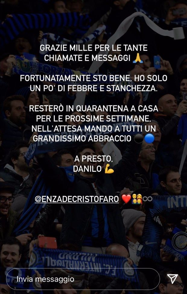 Attraverso una Instagram Stories, D'Ambrosio ha voluto tranquillizzare tutti e ringraziare per i tanti messaggi ricevuti