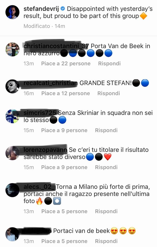 L'Olanda di Stefan de Vrij è stata battuta dal Portogallo, che si è aggiudicato la Nations League. Il difensore nerazzurro ha esternato la sua delusione sui social, dichiarandosi deluso del risultato. I tifosi dell'Inter sono accorsi in massa per consolarlo e sostenerlo (de Vrij è uno dei giocatori più amati) e scorrendo le foto postate dal giocatore gli hanno chiesto all'unisono di soddisfare un desiderio di mercato: "Portaci Donny van de Beek!"