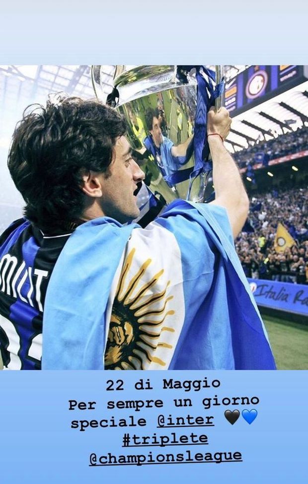 La foto pubblicata nelle stories di Instagram dall'ex attaccante dell'Inter Diego Milito nel giorno dell'anniversario del Triplete