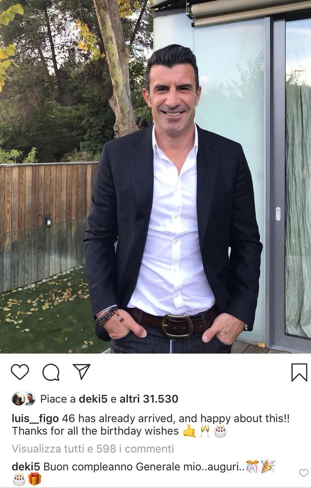 Luis Figo compie gli anni, arrivano gli auguri di Stankovic: “Buon compleanno generale mio”