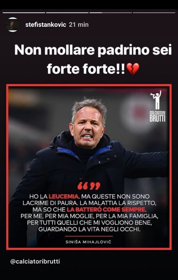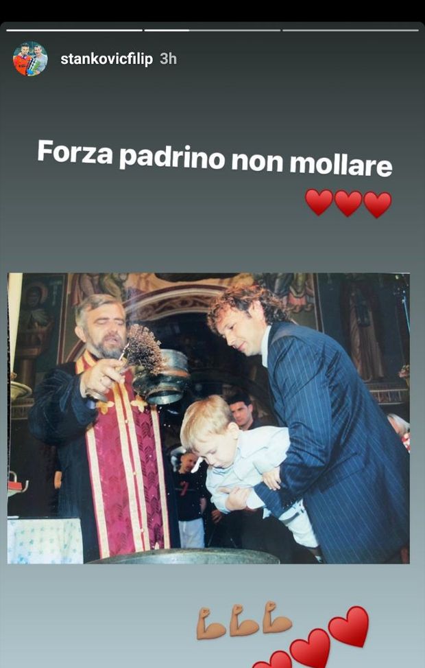 Fra questi Stefan e Filip Stankovic, i figli maggiori di Dejan, amico ed ex compagno di squadra di Mihajlovic, anche in nazionale: dai messaggi di solidarietà e incoraggiamento pubblicati su Instagram dal ragazzo, si capisce che Sinisa è il padrino di battesimo di entrambi i ragazzi, quindi i due Stankovic Jr. e l'ex difensore di Inter e Lazio hanno un legame speciale e l'incoraggiamento e la vicinanza di Stefan e Filip avranno fatto particolarmente piacere a Mihajlovic.
